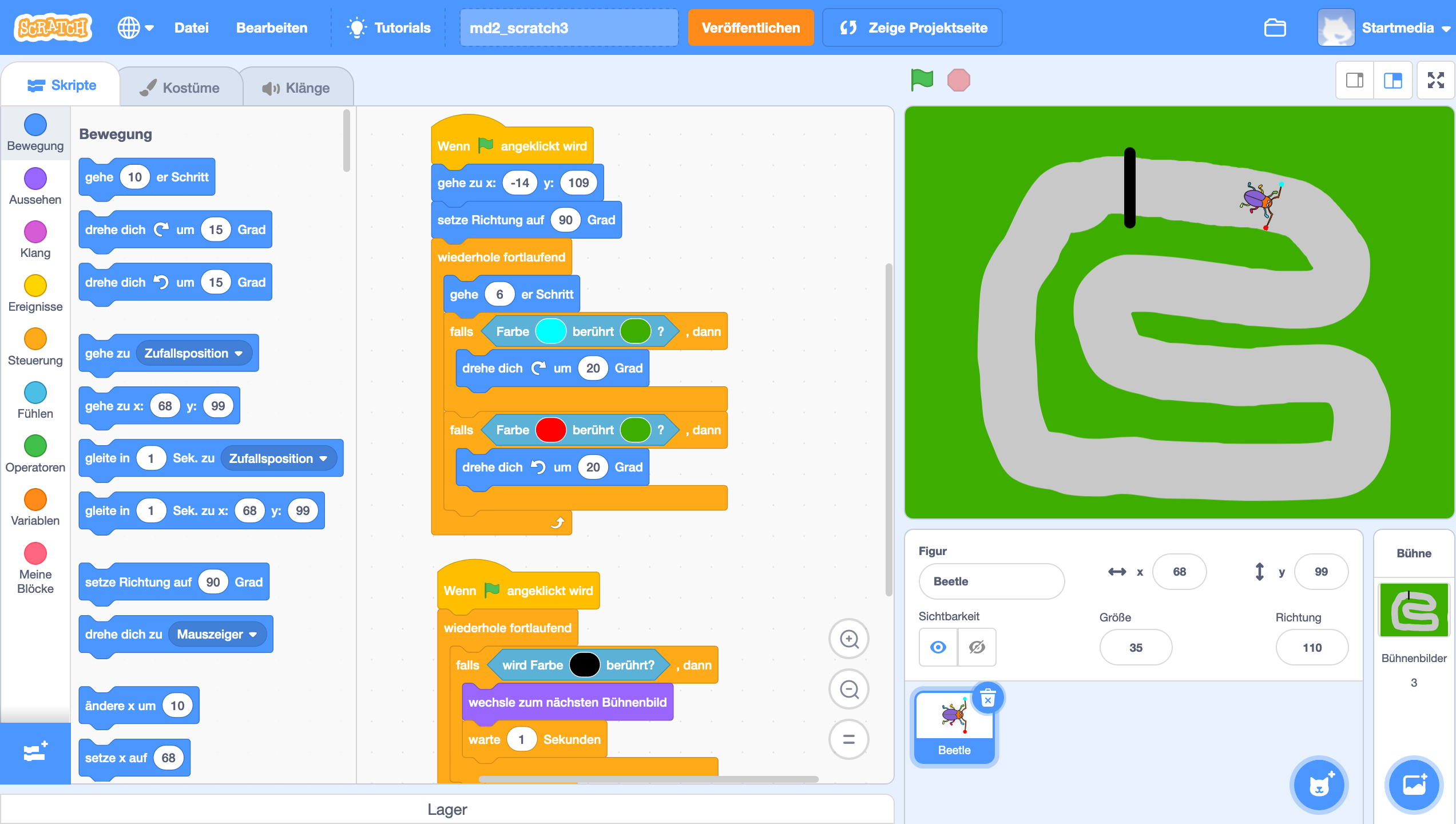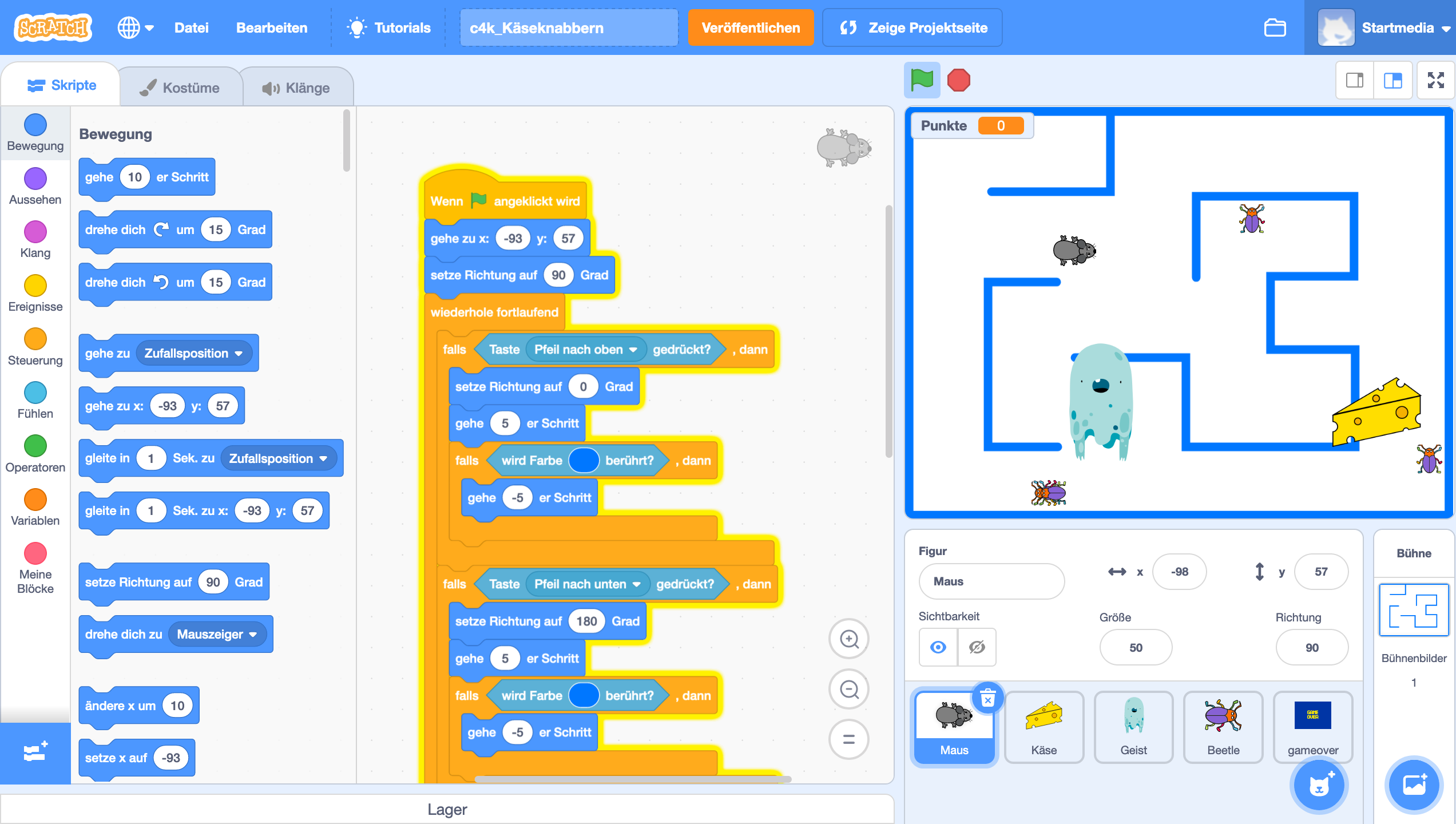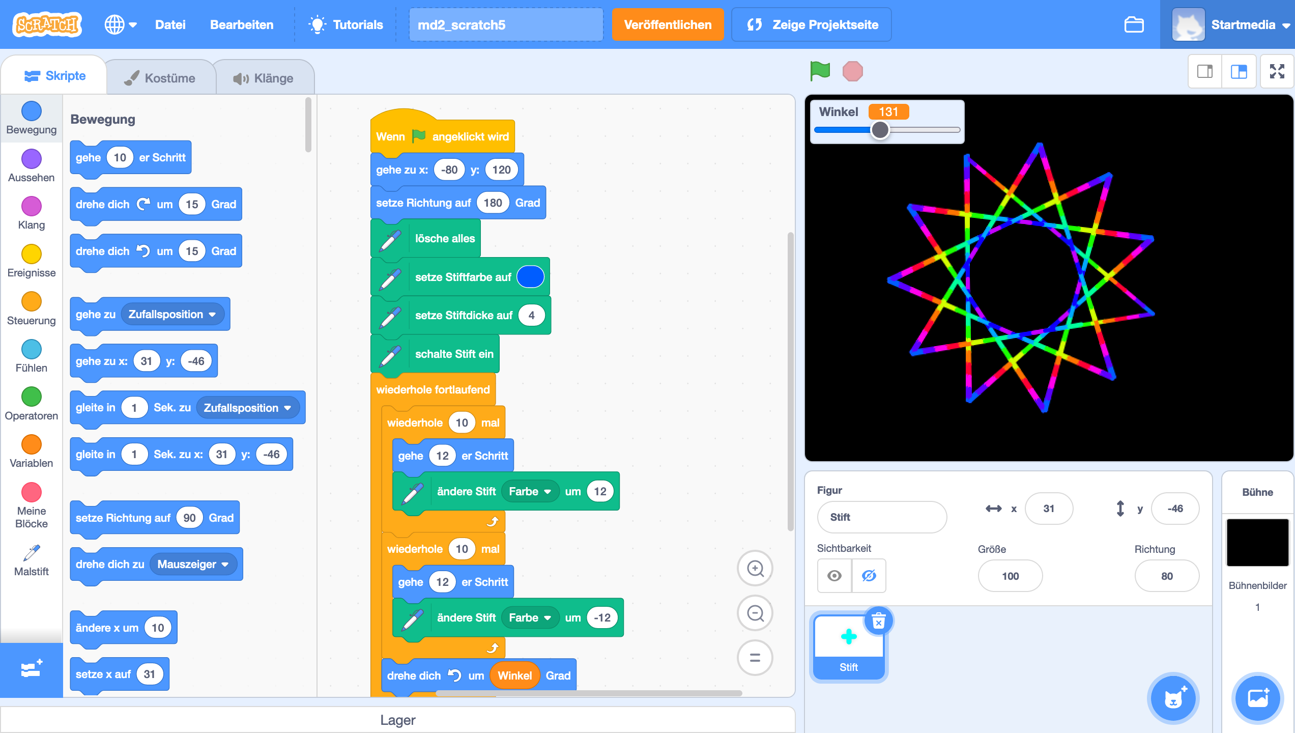 Mit Scratch kann man eine Vielzahl von interaktiven Geschichten, Spielen und Animationen erstellen. Hier sind einige Beispiele: