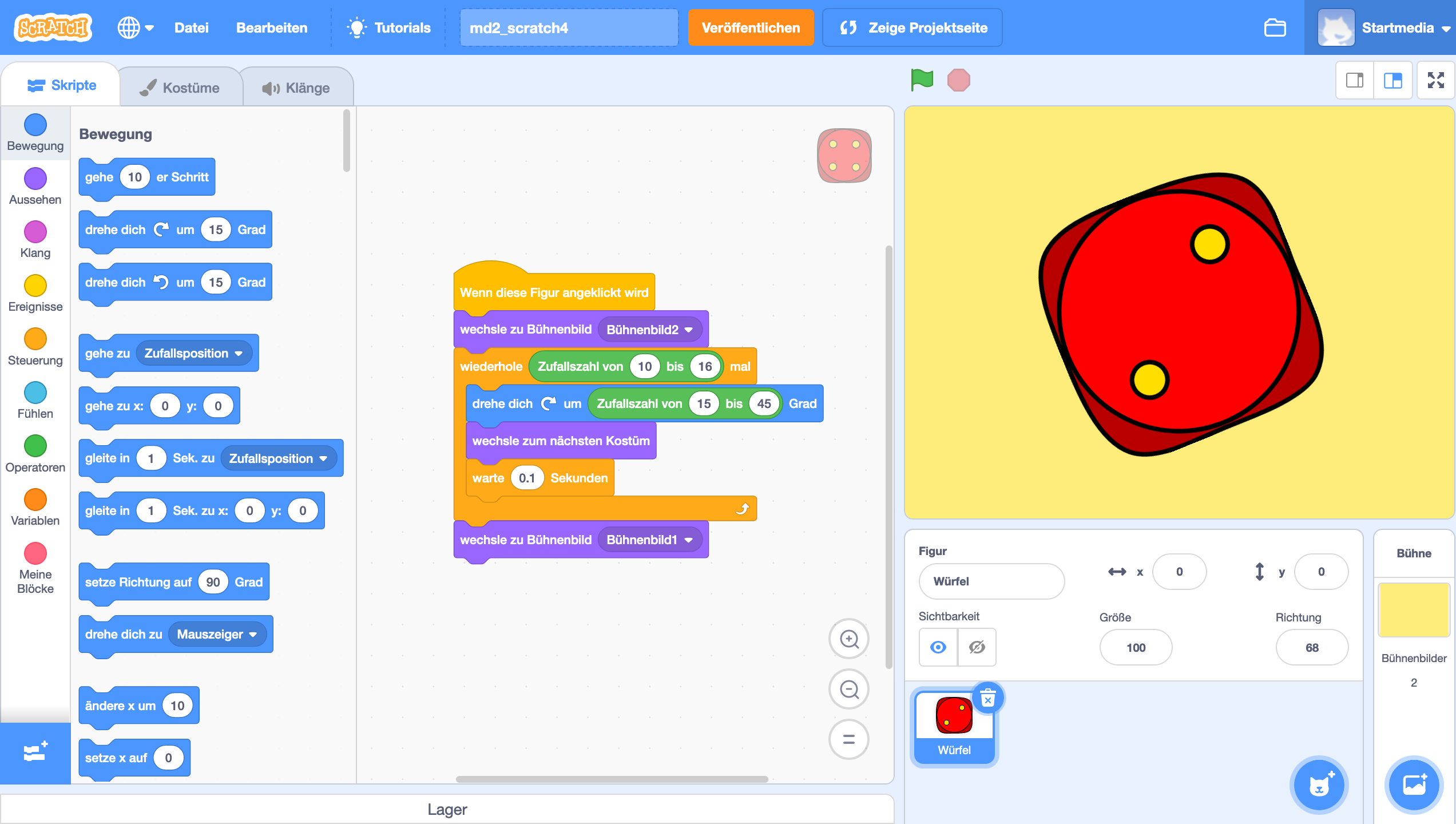 Scratch ist eine visuelle Programmiersprache und Entwicklungsumgebung, die hauptsächlich für Kinder und Jugendliche entwickelt wurde, um ihnen bei der Einführung in die Informatik zu helfen. Die Benutzeroberfläche ist intuitiv und einfach zu bedienen, was es Anfängern ermöglicht, schnell Erfolgserlebnisse zu erzielen.