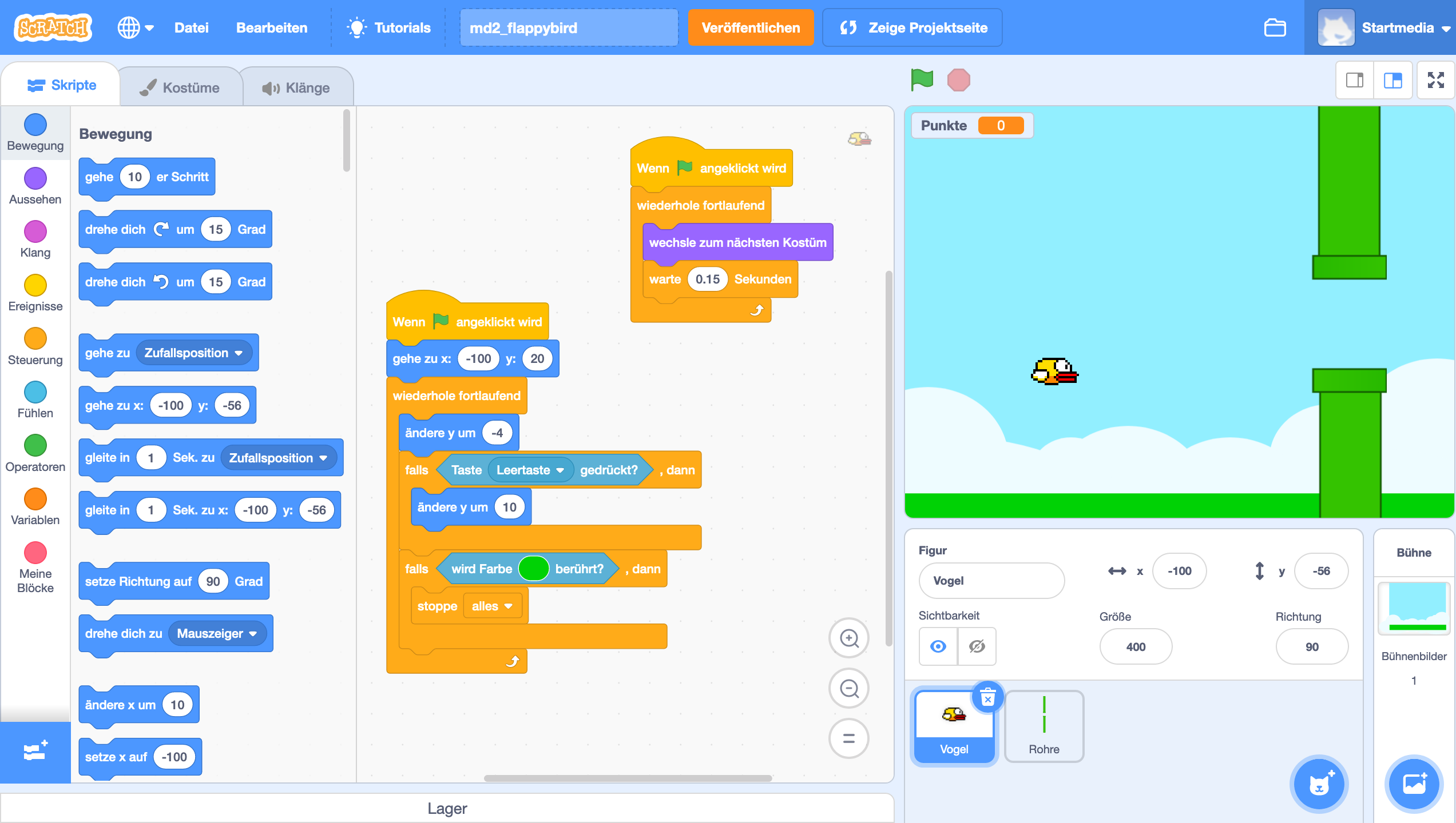 Mit Scratch kann man eine Vielzahl von interaktiven Geschichten, Spielen und Animationen erstellen. Hier sind einige Beispiele: